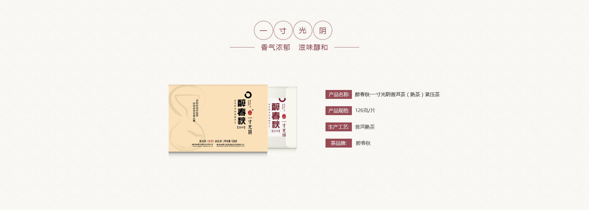 醉春秋·一寸光陰普洱茶(熟茶)緊壓茶 (126克)